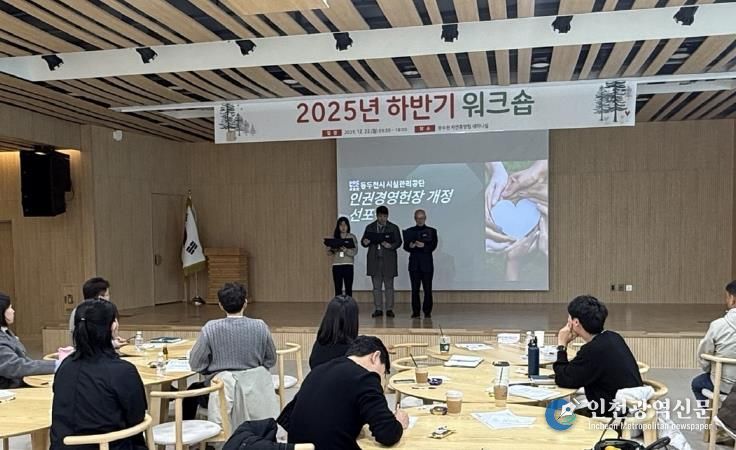 [인천광역신문] 박진 기자 | 동두천시 시설관리공단은 지난 22일 동두천 자연휴양림 세미나실에서 열린 2025년 하반기 워크숍에서 인권경영 헌장 개정 및 선포식을 개최했다고 밝혔다.