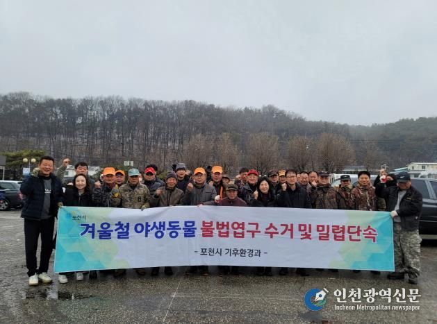 [인천광역신문] 박진 기자 | 포천시는 지난 24일 영중면 성동리 일원에서 겨울철 불법 밀렵 행위를 근절하기 위해 야생동물 밀렵 단속과 불법 엽구 수거 활동을 실시했다.