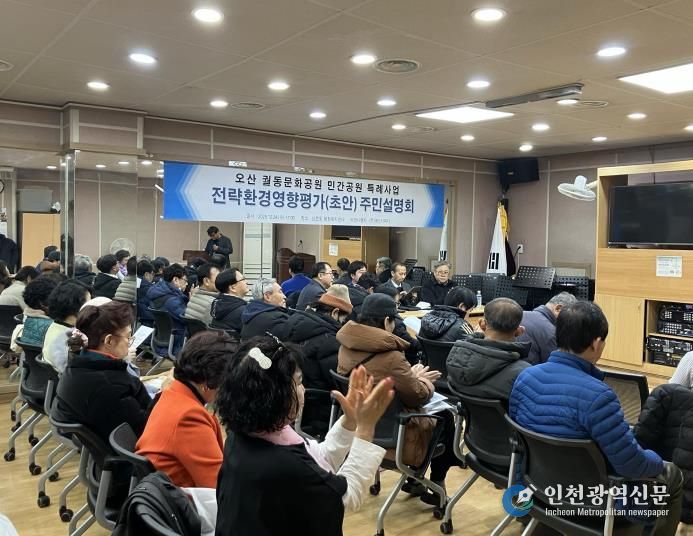 [인천광역신문] 박진 기자 | 오산시 남촌동 행정복지센터는 지난 24일 궐동문화공원 조성사업과 관련한 환경영향평가 주민설명회를 개최하고, 지역 주민 60여 명을 대상으로 사업 내용을 공유하며 의견을 수렴했다고 밝혔다.