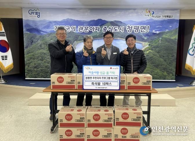 [인천광역신문] 박진 기자 | 가평군 청평면 주민자치 프로그램 탁구반 회원들은 최근 청평면 행정복지센터를 방문해 소외된 이웃들이 따뜻한 겨울을 보내길 바라는 마음으로 즉석밥 10박스를 기탁했다.