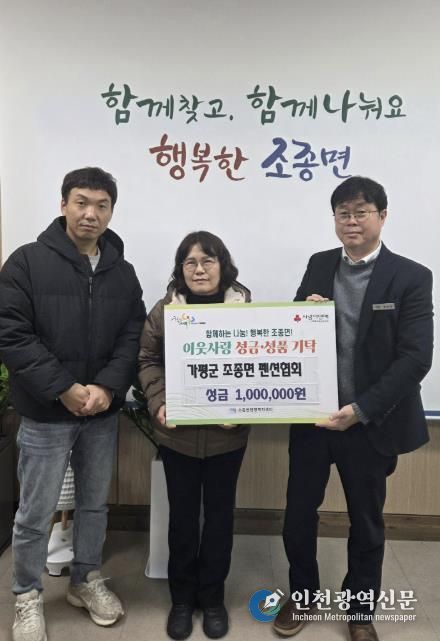 [인천광역신문] 박진 기자 | 가평군 조종면 펜션협회는 지난 24일 조종면 행정복지센터를 방문해 이웃돕기 성금 100만원을 기탁하며 온기를 더했다.