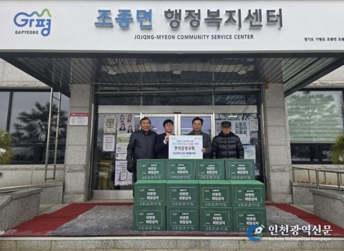 [인천광역신문] 박진 기자 | 가평군 조종면 소재 현리중앙교회는 성탄을 맞아 지난 24일 조종면 행정복지센터를 방문해 지역 내 취약계층을 위한 200만원 상당의 생필품세트를 기탁했다.