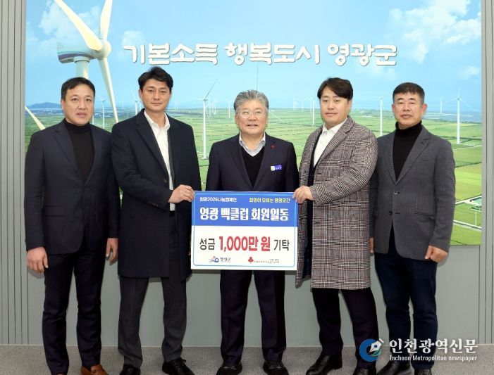 [인천광역신문] 박진 기자 | 영광백클럽(회장 조영민)은 12월 24일 ‘희망2025 나눔캠페인’의 일환으로 영광군 공식 연합모금처인 ‘희망이 모이는 영광곳간’에 이웃돕기 성금 1,000만 원을 기탁했다.
