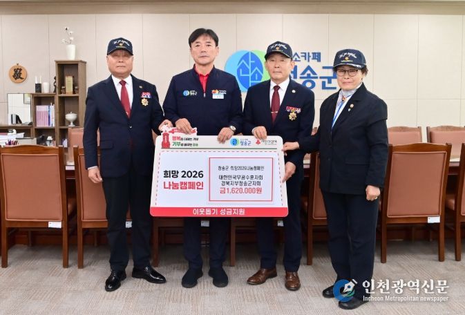 [인천광역신문] 박진 기자 | 청송군은 26일 대한민국무공수훈자회 경북지부 청송군지회(회장 신종수)가 청송군을 방문해 지역 내 도움이 필요한 이웃들을 위한 성금 162만 원을 기탁했다고 밝혔다.