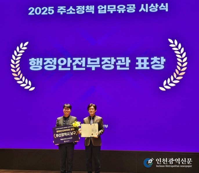 [인천광역신문] 박진 기자 | 부산광역시 남구는 행정안전부가 주관한 ‘2025년 주소정책 업무 유공’ 분야에서 우수 기관으로 선정돼 행정안전부 장관 표창을 수상하고, 특별교부세 4천만 원을 확보했다고 밝혔다.