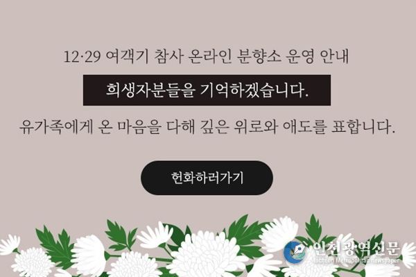 [인천광역신문] 박진 기자 | 광주시교육청은 12·29 여객기 참사 1주기를 맞아 오는 29일까지 누리집에 온라인 추모공간을 운영한다.