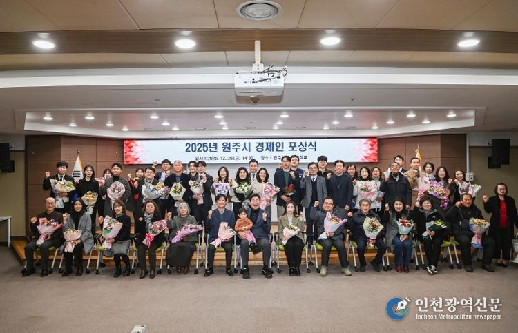 [인천광역신문] 박진 기자 | 원주시는 26일 오후 2시 30분, 시청 지하1층 다목적홀에서 ‘2025년 원주시 경제인 포상식’을 개최했다.