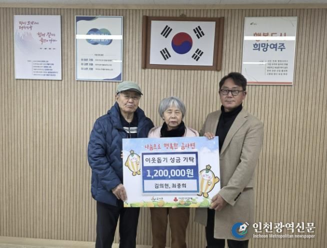 [인천광역신문] 박진 기자 | 금사면 생활개선회 최종희 회장이 배우자와 함께 지난 24일 여주시 금사면행정복지센터를 방문하여 이웃돕기 성금 120만원을 기탁했다.