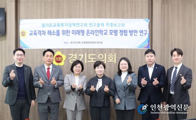 [인천광역신문] 박진 기자 | 경기도의회 교육행정위원회 소속 황진희 의원(더불어민주당)은 지난 12월 24일 경기도의회에서 열린 '교육격차해소를 위한 미래형 온라인 학교 모델 정립 방안 연구용역 최종보고회'에서 경기도온라인학교의 지속가능한 운영과 제도적 기반 마련의 중요성을 강조했다.