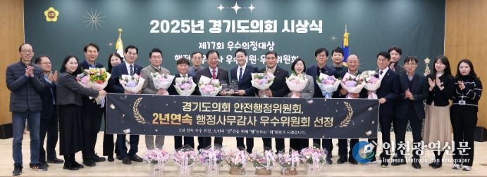 [인천광역신문] 박진 기자 | 경기도의회는 26일 도의회 대회의실에서 제17회 우수의정대상 및 2025년 행정사무감사 우수의원 및 우수 위원회 등 시상식을 개최했다.