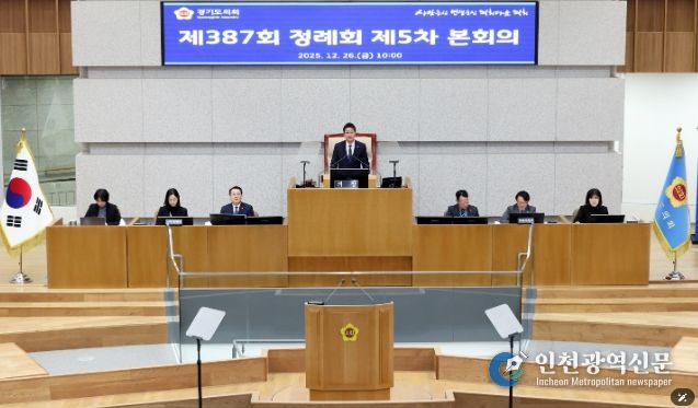 경기도의회는 이날 제387회 정례회 5차 본회의를 열고 2026년도 새해 예산안을 의결하며 회기 일정을 끝마쳤다.