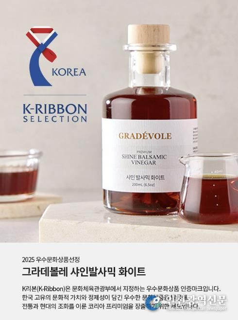 샤인머스캣을 기반으로 한 ‘샤인발사믹 화이트’제품은 한국 고유의 정체성과 문화적 가치를 담은 상품으로 인정받아 지난 7월 문화체육관광부가 지정하는 우수문화상품(K-RIBBON)인증을 획득했다. 이는 국가가 공인하는 프리미엄 문화상품 인증으로, 한국 농식품의 글로벌 경쟁력과 브랜드 가치를 인정받았다는데 큰 의미가 있다.