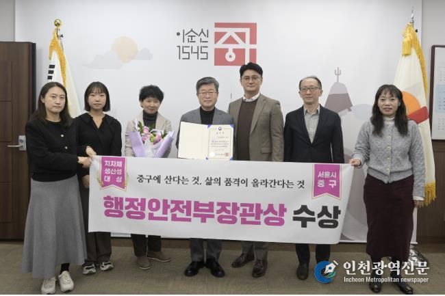[인천광역신문] 박진 기자 | 서울 중구가 '제15회 지방자치단체 생산성 대상'에서 우수상(행정안전부장관 표창)을 수상하며 전국 최고 수준의 행정 경쟁력을 다시 한번 입증했다. 중구는 2년 전 동일한 평가에서 대통령상을 수상한 데 이어, 이번 수상으로 지속적이고 안정적인 역량을 갖춘 자치구임을 확인했다.