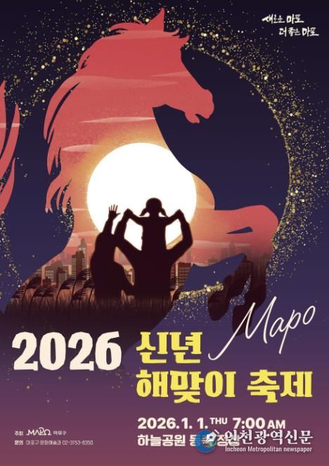 [인천광역신문] 박진 기자 | 마포구는 붉은 말의 해 병오년(丙午年)을 맞아 2026년 1월 1일 하늘공원 정상에서 ‘2026 신년 해맞이 축제’를 개최한다.