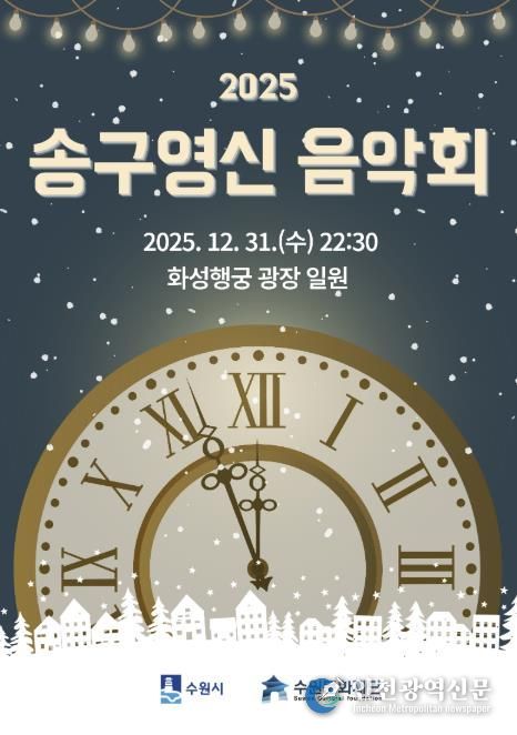 [인천광역신문] 박진 기자 | 수원문화재단은 오는 31일 오후 10시 30분부터 수원 화성행궁 광장 일원에서 2025년을 마무리하고 2026년 신년을 맞이하는 ‘2025 송구영신 음악회’를 개최한다.