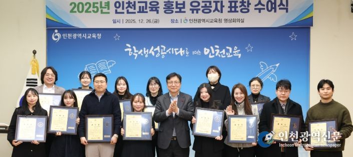 [인천광역신문] 박진 기자 | 인천광역시교육청은 한 해 동안 인천교육 현장의 생생한 모습을 홍보한 유공자들의 노고를 격려하는‘2025년 인천교육 홍보 유공자 표창 수여식’을 26일 개최했다.