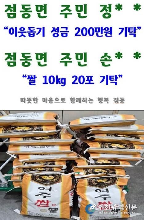 이와 함께 점동면 주민 정** 씨가 어려운 이웃을 위해 성금 200만원을 기탁했으며, 주민 손** 씨 역시 정성과 온기를 담은 쌀 10kg 20포를 전달했다.