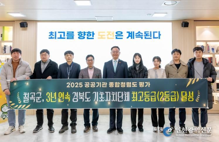 [인천광역신문] 박진 기자 | 경북 칠곡군이 3년 연속 경북도 내 기초자치단체 가운데 최고 수준의 청렴도를 유지했다.