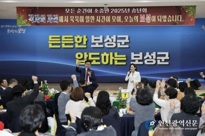 [인천광역신문] 박진 기자 | 보성군은 지난 24일 군청 4층 대회의실에서 한 해 동안 군정 발전을 위해 헌신한 공직자들을 격려하고 소통과 화합을 도모하기 위해 ‘모든 순간이 소중한 2025년 송년회’를 개최했다고 밝혔다.
