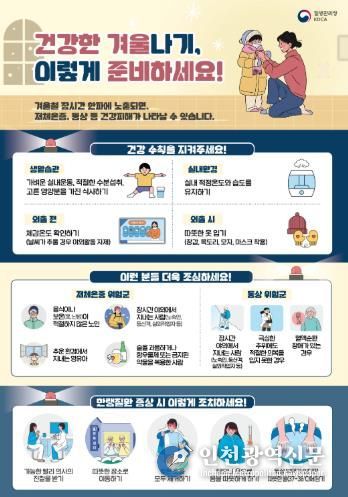또 모자와 목도리, 장갑, 마스크 등을 착용해 신체 노출을 최소화하고, 실내에서도 난방이 충분하지 않을 경우 보온에 각별히 신경 써야 한다고 강조했다.