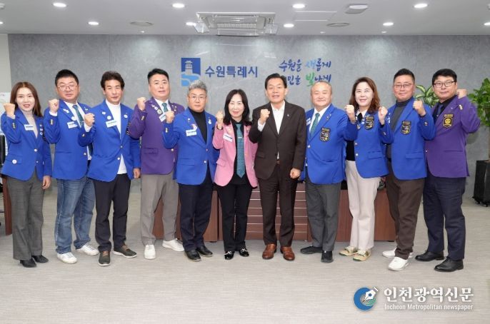 시장 집무실에서 열린 기부 물품 전달식에는 이재준 수원시장, 수원2지역 로타리클럽 임원이 참석했다.