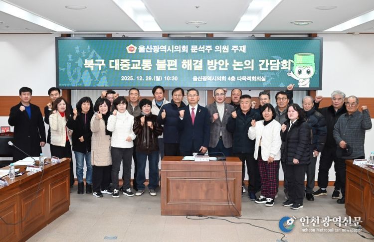 [인천광역신문] 박진 기자 | 울산광역시의회 문석주 의원(농소2·3동)은 29일 오전, 시의회 4층 다목적회의실에서 북구 약수·중산·이화 지역 대중교통 불편 해결을 위한 주민대표 간담회를 개최했다.