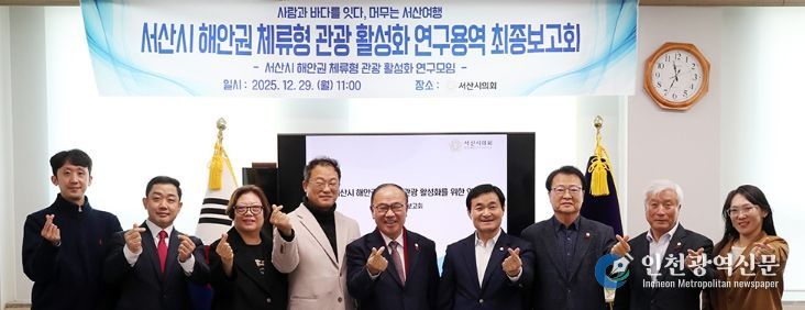 [인천광역신문] 박진 기자 | 서산시의회 의원 연구모임인 ‘서산시 해안권 체류형 관광 활성화 연구모임’이 29일 서산시의회 의원 대기실에서 ‘서산시 해안권 체류형 관광 활성화 연구용역’ 최종보고회를 개최했다.