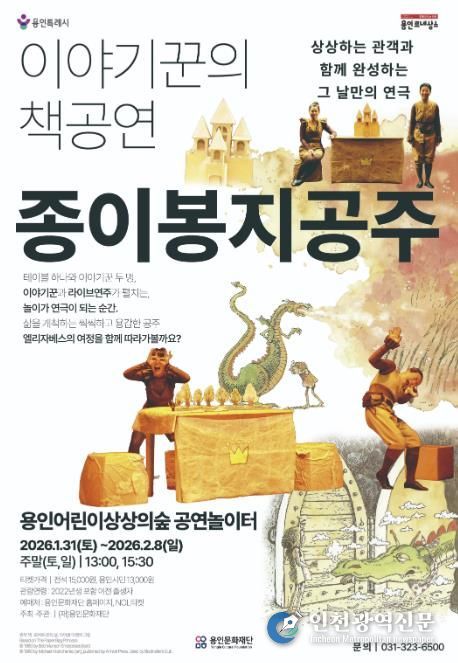 [인천광역신문] 박진 기자 | 용인문화재단은 용인어린이상상의숲에서 오는 2026년 1월 31일부터 2월 8일까지 어린이 연극 〈종이봉지공주〉를 공연놀이터에서 선보인다.