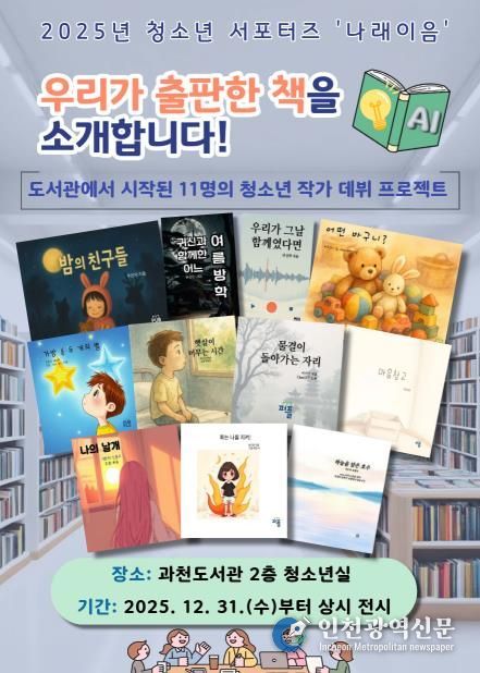 조중복 경기도교육청과천도서관장은 “이번 도서 출판은 도서관의 공유학교 프로그램과 청소년 동아리 활동이 연계되어 만들어낸 뜻깊은 성과”라며 “앞으로도 도서관이 단순히 책을 읽는 공간을 넘어, 청소년들이 꿈을 키우고 창작자로 성장할 수 있는 기회의 장이 되도록 지원을 아끼지 않겠다”고 말했다.
