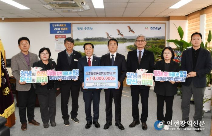 [인천광역신문] 박진 기자 | 산림조합중앙회 부산울산경남지역본부(본부장 강주호) 지난 29일 (재)창녕군인재육성장학재단에 지역 인재육성을 위한 장학금 1,000만 원을 기탁했다.