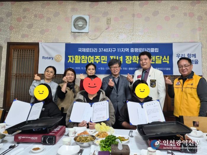 [인천광역신문] 박진 기자 | 증평지역자활센터는 지난 29일 증평로타리클럽(회장 홍성표)의 후원을 받아 자활사업 참여 주민 자녀 3명에게 각 20만원의 장학금을 전달했다.