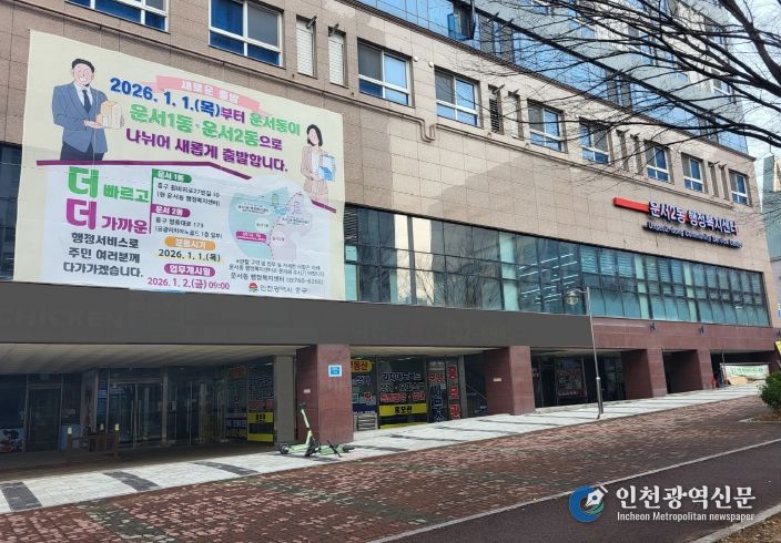 [인천광역신문] 박진 기자 | 인천시 중구는 행정 수요 증가와 주민 생활권 변화에 적극적으로 대응하기 위해 오는 2026년 1월 1일부로 운서동을 ‘운서1동’과 ‘운서2동’으로 분동해 업무를 시작한다고 밝혔다.