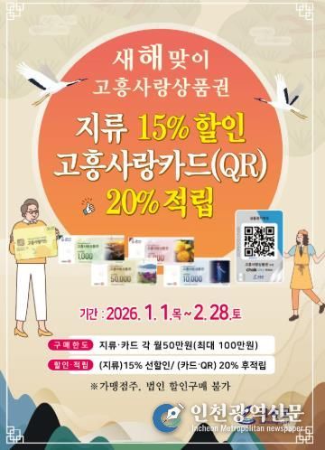 [인천광역신문] 박진 기자 | 고흥군은 새해를 맞아 군민의 장보기 부담을 대폭 낮추고 지역경제에 즉각적인 활력을 불어넣기 위해, 내년 1월부터 2월까지 두 달간 ‘새해맞이 고흥사랑상품권 특별할인 행사’를 추진한다고 밝혔다.