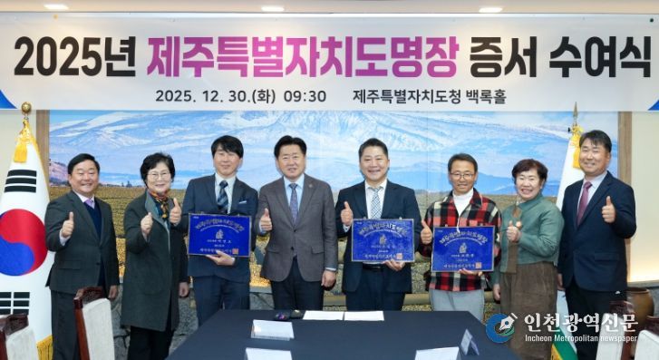 [인천광역신문] 박진 기자 | 제주특별자치도는 지역산업 발전과 숙련기술의 전승에 기여한 ‘2025년 제주특별자치도 명장’을 선정하고, 30일 명장 증서와 현판을 전달했다.