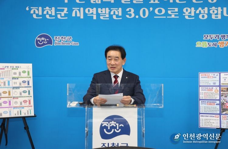 [인천광역신문] 박진 기자 | 송기섭 충북 진천군수는 30일 진천군청 브리핑룸에서 기자회견을 열고 ‘군민 모두가 행복한 공동체’를 목표로 추진했던 지난 10년간의 성과 12개 분야를 발표했다.