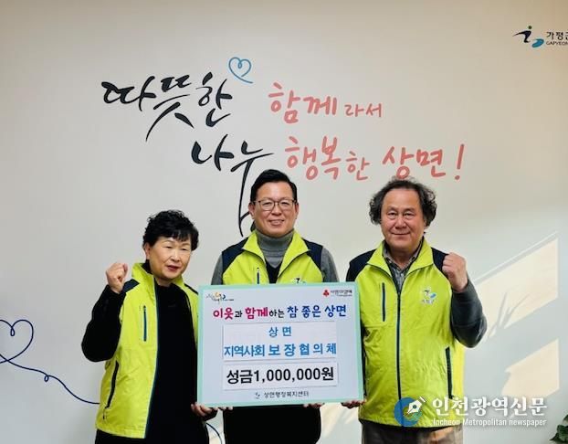 [인천광역신문] 박진 기자 | 가평군 상면 지역사회보장협의체(지사협)는 29일 회원들이 자발적으로 모은 회비 100만원을 상면 행정복지센터에 기탁했다.