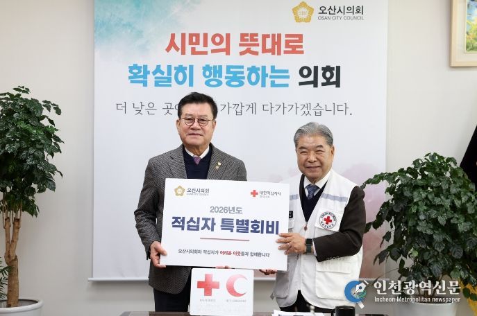 이 회장은 또 “오산은 나눔이 일회성에 그치지 않고 생활 속 실천으로 이어지는 도시”라며 “적십자 활동에 보내주신 오산시의회와 오산시민들의 마음에 깊이 감사드리며 적십자도 그 신뢰에 보답할 수 있도록 도움이 필요한 이웃에게 실제로 힘이 되는 활동을 이어가겠다”고 말했다.