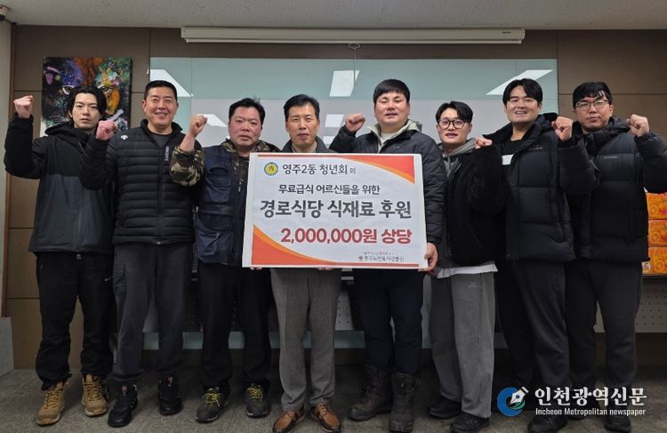 [인천광역신문] 박진 기자 | 부산 중구 영주2동 청년회(회장 김병태)는 지난 29일 중구노인복지관 분관(관장 이희배)에 경로식당 무료급식 어르신들을 위해 2백만원 상당의 식재료를 후원했다.