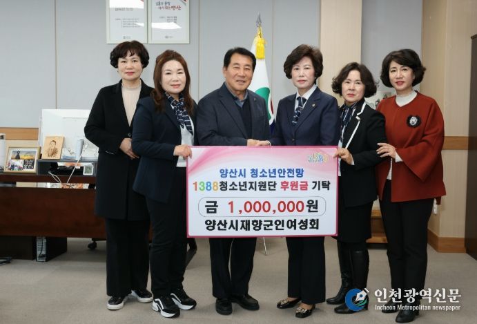 [인천광역신문] 박진 기자 | 양산시 재향군인여성회(회장 전정애)는 30일 양산시를 방문해 후원금 100만 원을 양산시청소년상담복지센터 1388청소년지원단에 기탁했다.