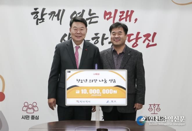 [인천광역신문] 박진 기자 | ㈜벽우는 지난 30일 오후 당진시청 7층 접견실에서 지역 내 어려운 이웃을 돕기 위한 성금 1000만 원을 당진시에 기탁했다.
