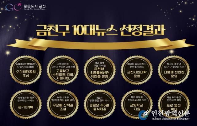[인천광역신문] 박진 기자 | 금천구는 미래지향적이고 발전하는 금천의 새로운 변화를 상징하는 도시브랜드(BI) ‘좋은도시 금천’을 잘 구현해 낸 ‘금천구 10대뉴스’ 선정 온라인 투표 결과를 31일 발표했다.