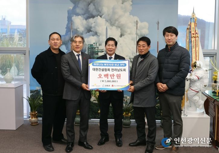 [인천광역신문] 박진 기자 | 고흥군은 지난 30일 연말연시를 맞아 대한건설협회 전라남도회(회장 박경재)로부터 지역 내 어려운 이웃을 돕기 위한 성금 500만 원을 기탁받았다고 밝혔다.