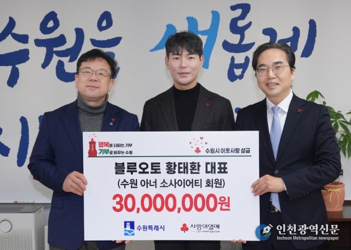 [인천광역신문] 박진 기자 | 황태환 블루오토 대표가 12월 31일 “취약계층 아동 지원에 사용해달라”며 3000만 원을 수원시에 기부했다.