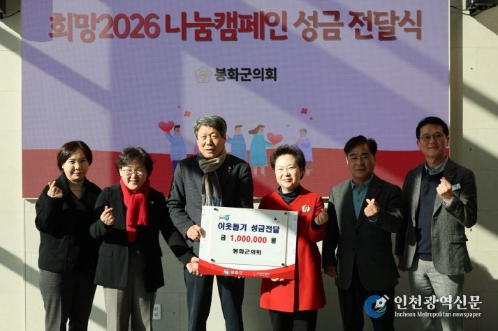 [인천광역신문] 박진 기자 | 봉화군의회는 31일 의회 로비에서 연말연시를 맞아 이웃사랑 실천을 위한 ‘희망2026 나눔캠페인’ 성금을 전달했다.