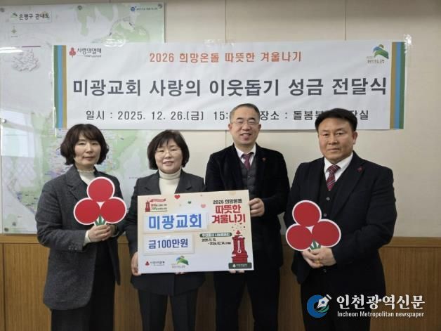[인천광역신문] 박진 기자 | 서울 은평구는 지난달 26일 미광교회와 2026 희망온돌 따뜻한 겨울나기 사랑의 이웃돕기 성금 전달식을 가졌다고 밝혔다.