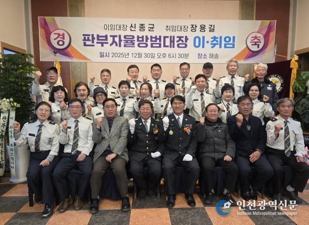[인천광역신문] 박진 기자 | 원주시 판부면자율방범대는 지난달 31일 자율방범대원과 관계자 등 80여 명이 참석한 가운데, 제8대 장용길 신임 대장과 제7대 신종균 전 대장의 이·취임식을 개최했다.