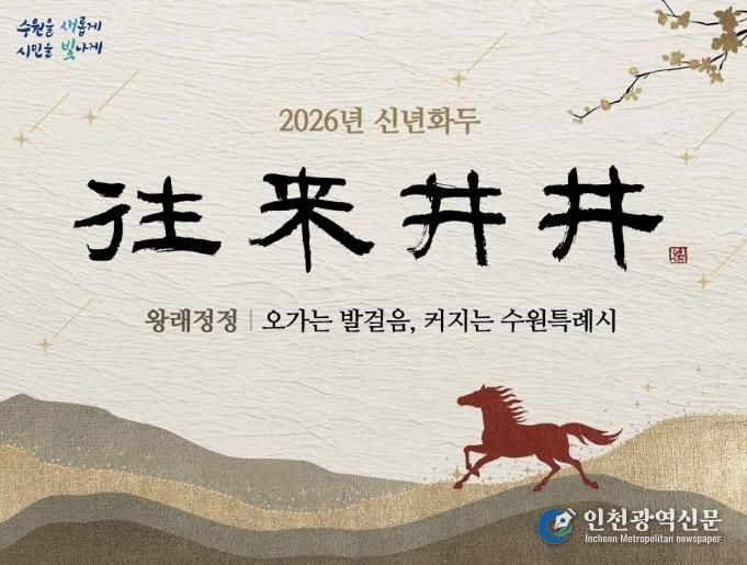 [인천광역신문] 박진 기자 | 수원특례시가 ‘왕래정정(往來井井)’을 2026년 신년화두로 정했다. ‘오가는 발걸음, 커지는 수원특례시’라는 의미를 담았다.