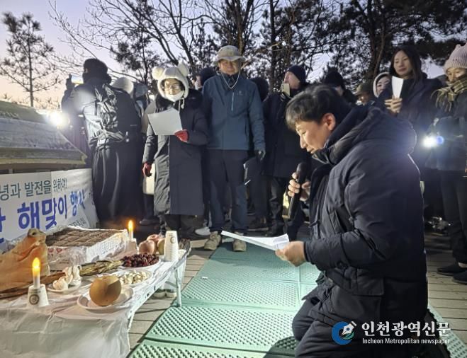 [인천광역신문] 박진 기자 | 권선구 금곡동 주민자치회는 2026년 병오년을 맞아 1월 1일에 칠보산 정상의 파노라마 전망대에서 지역의 주요 인사와 주민 등 100여 명이 모여 해맞이 행사를 개최했다.