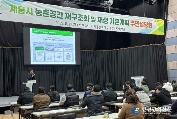 [인천광역신문] 박진 기자 | 계룡시는 6일 오후 3시 시청 대회의실에서 ‘농촌공간 재구조화 및 재생 기본계획’ 수립을 위한 주민공청회를 개최한다고 밝혔다.