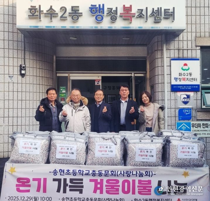 [인천광역신문] 박진 기자 | 인천 동구 송현초등학교총동문회 사랑나눔회는 지난달 29일 화수2동 지역사회보장협의체(민간위원장 강상원)에 겨울 이불을 기탁했다고 밝혔다.